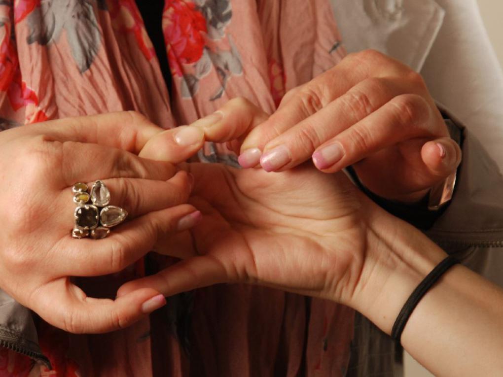 Hierbei hält der Klient/Proband Daumen und Zeigefinger kräftig zu einem Ring geformt zusammen, während der Coach versucht, diesen Ring zu öffnen.
